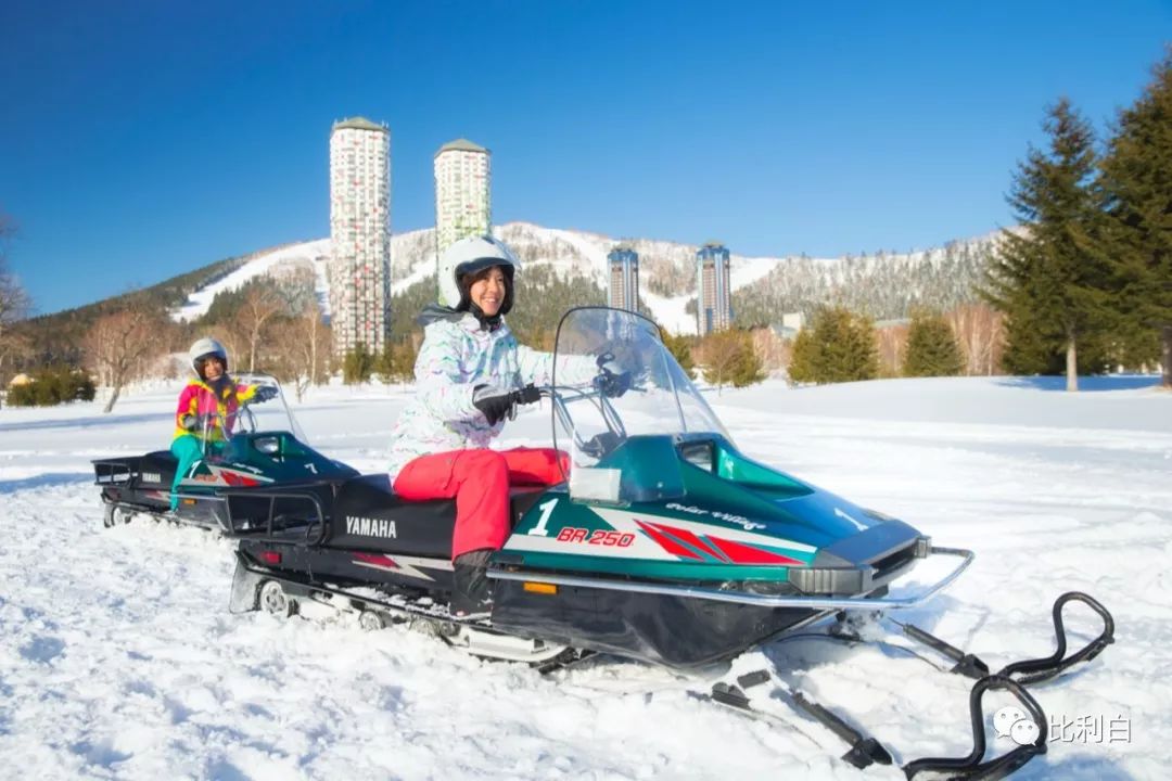滑雪累了,宜动者可以跟随向导体验驾驶雪地摩托,或租上雪橇或香蕉船飞驰。宜静者则穿上雪地大脚鞋,去周边的白色森林散步。