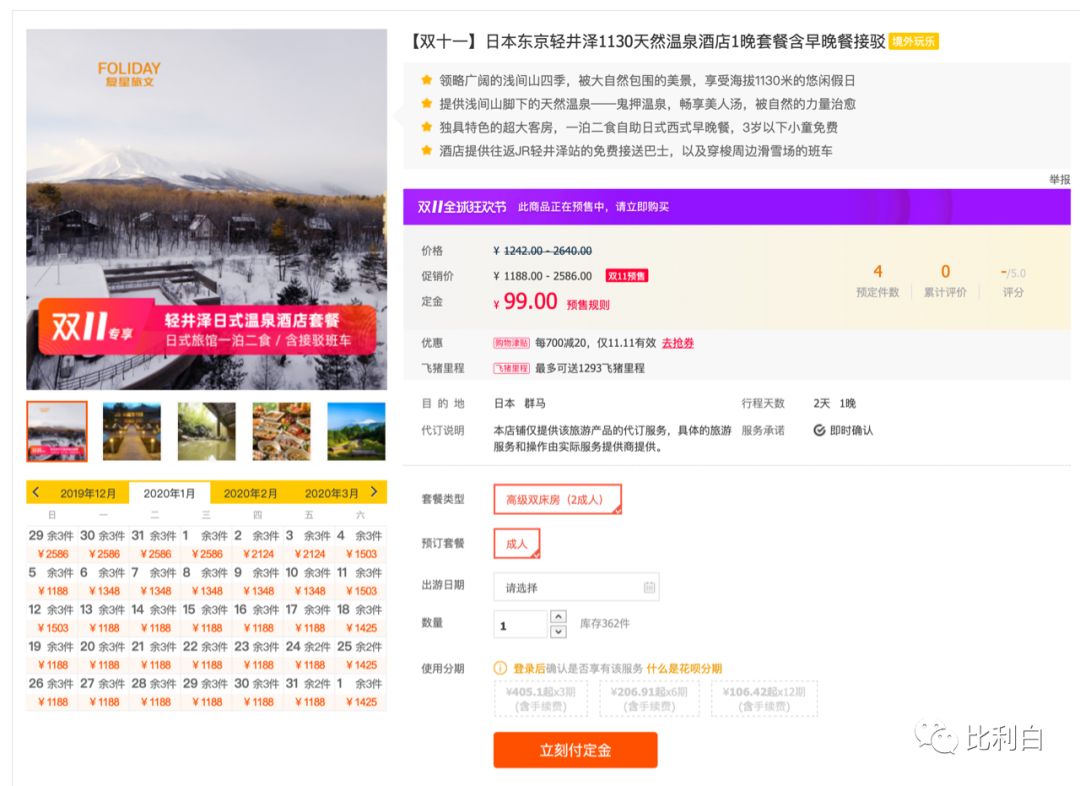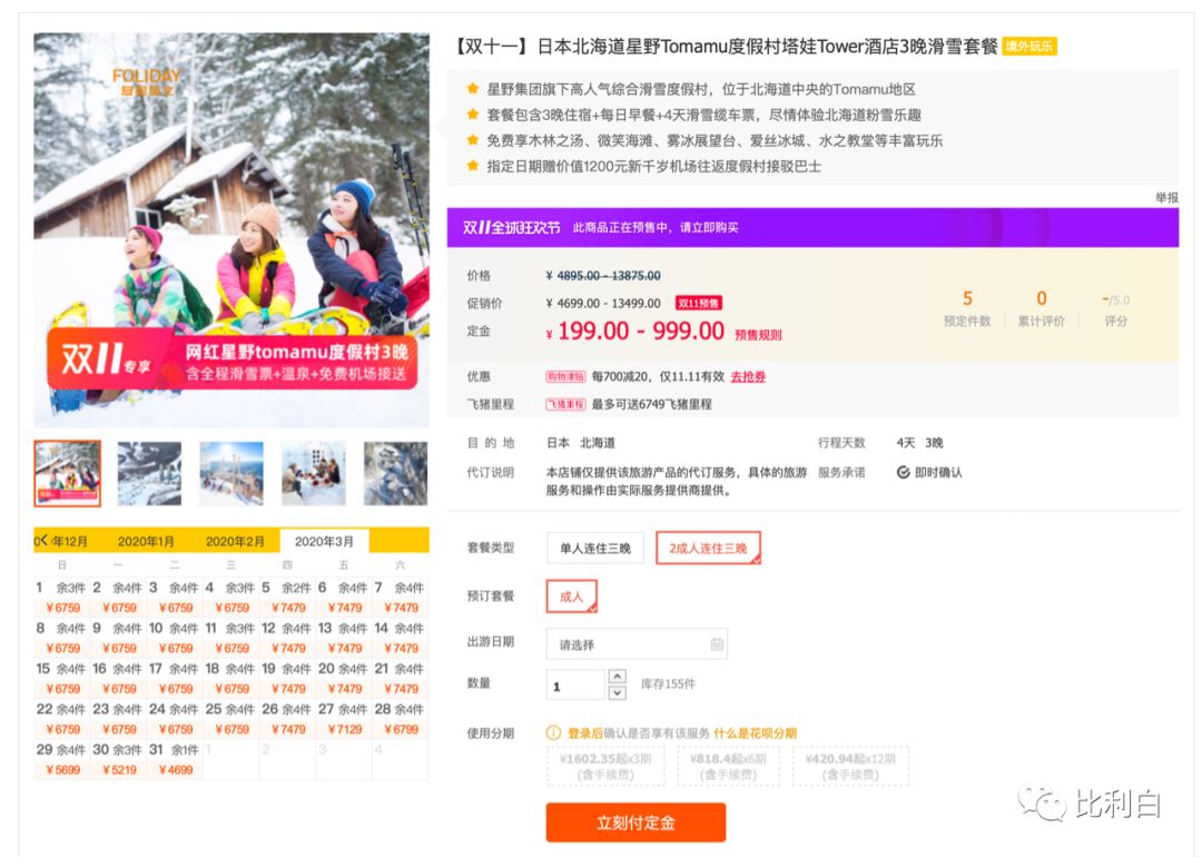 冬季日本滑雪旅行 飞猪双十一限定