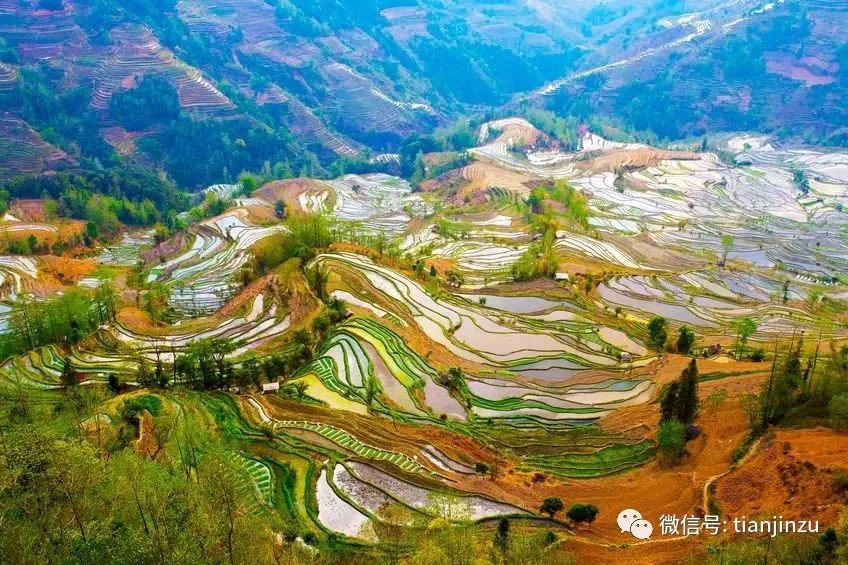 元阳梯田是元阳最出名的景色,秋季过后,梯田上的稻田都被收割完了,剩下的是波光粼粼的水,层层叠叠地分布着。