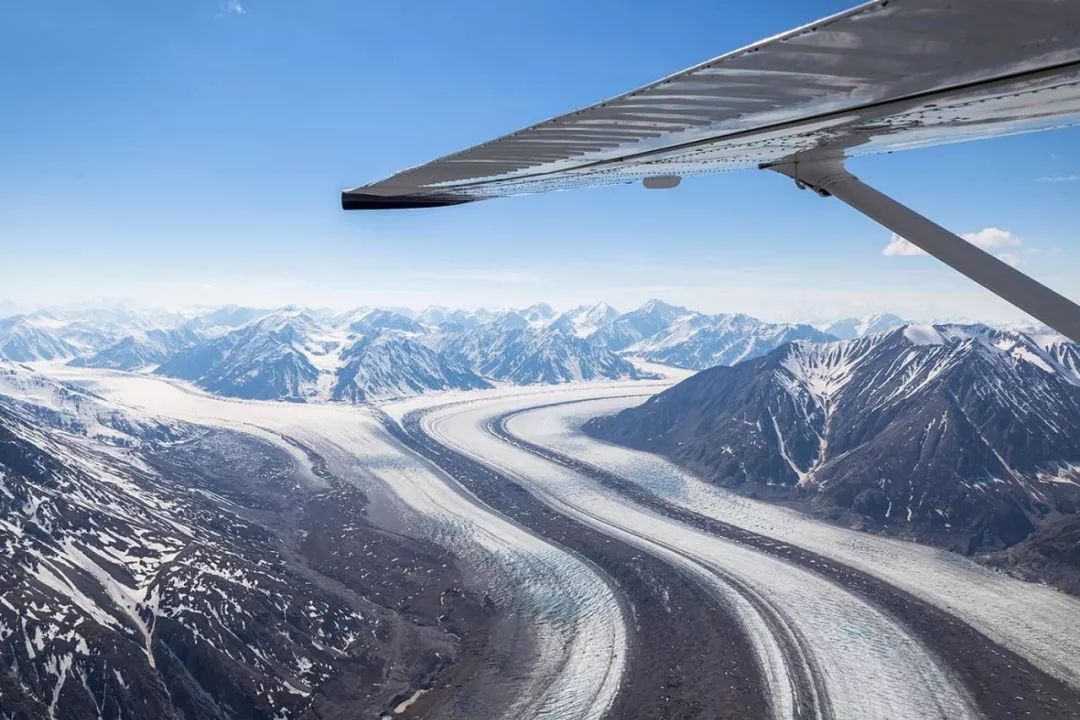 早已知道怎么做的游客,正乘坐小飞机飞上山巅,