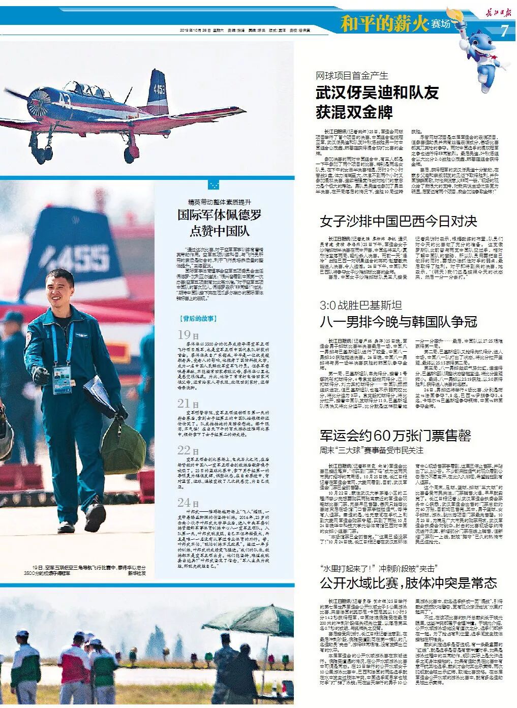 同样,首次亮相世界军人运动会的中国八一空军五项队,包揽了飞行项目、运动项目男女个人、男女团体共5块金牌。详见>>>