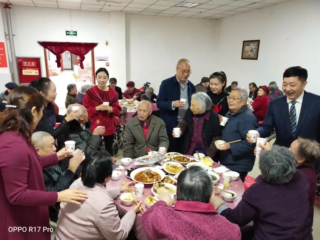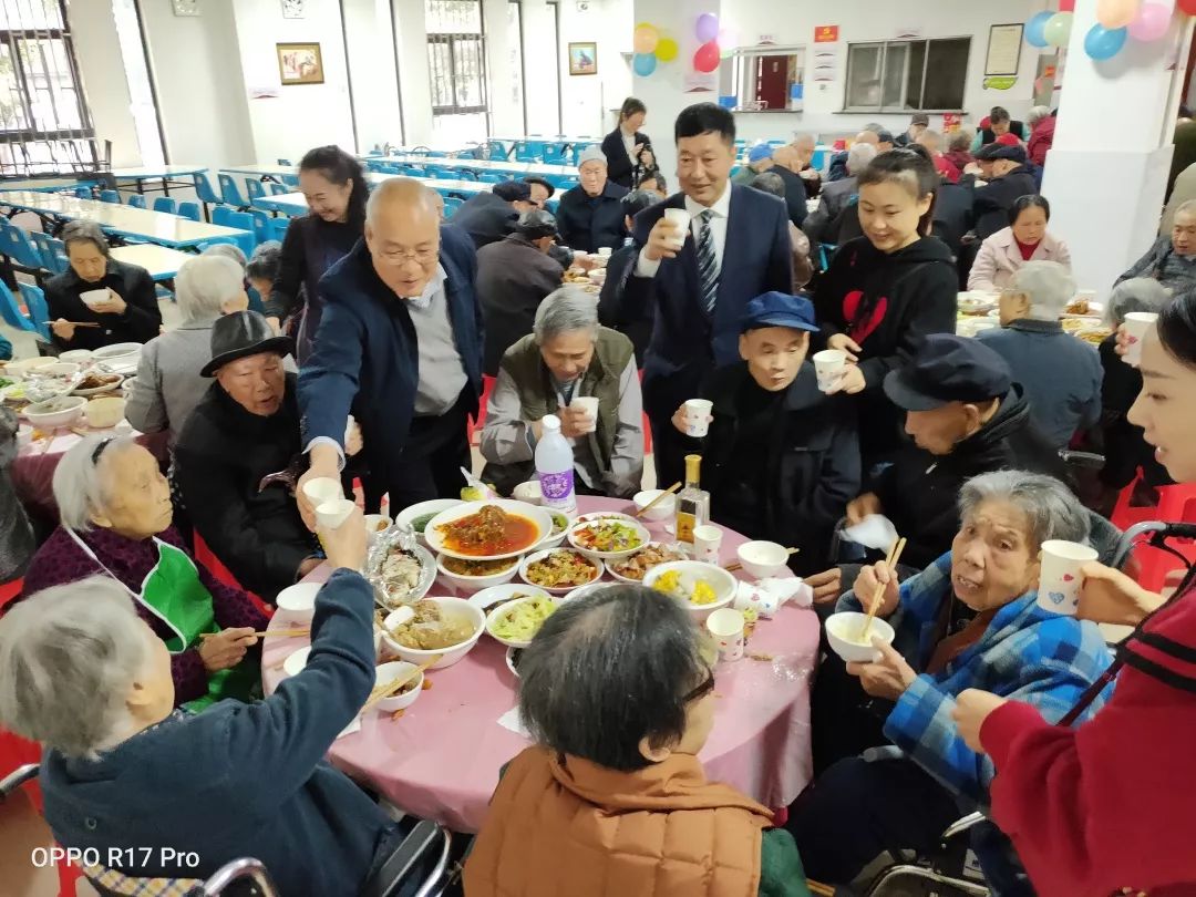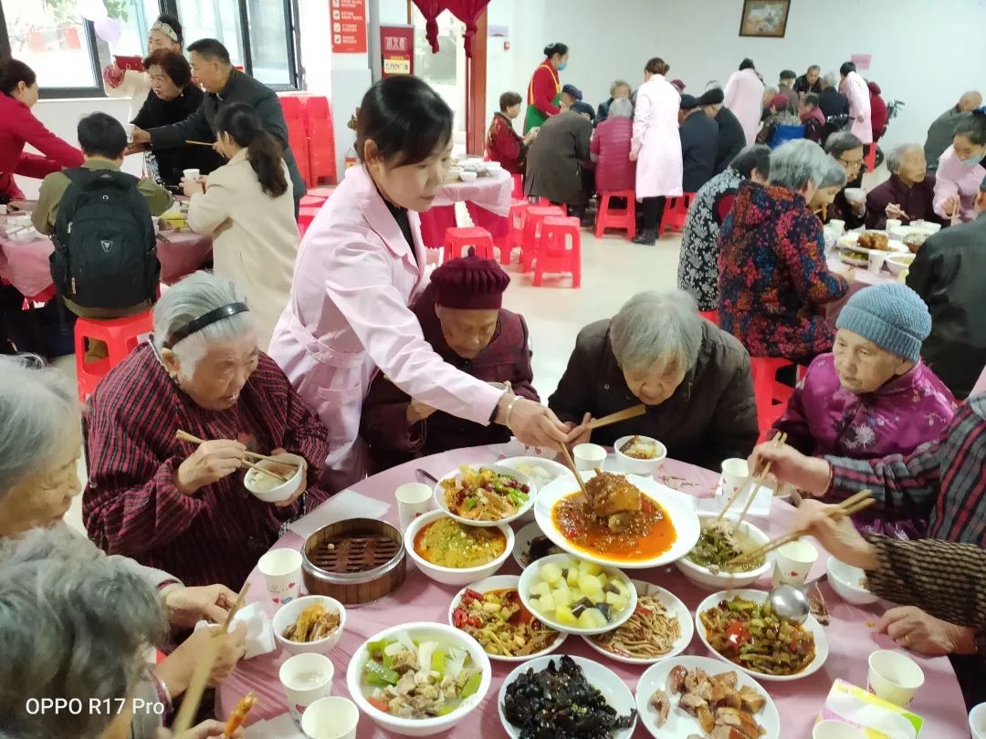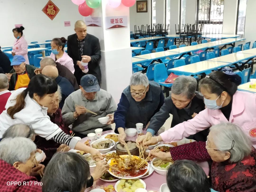 欢庆会结束后,敬老院为老人们准备了菜品丰富的坝坝宴,来院领导、嘉宾老人及员工像家人一样围坐在一起,其乐融融。