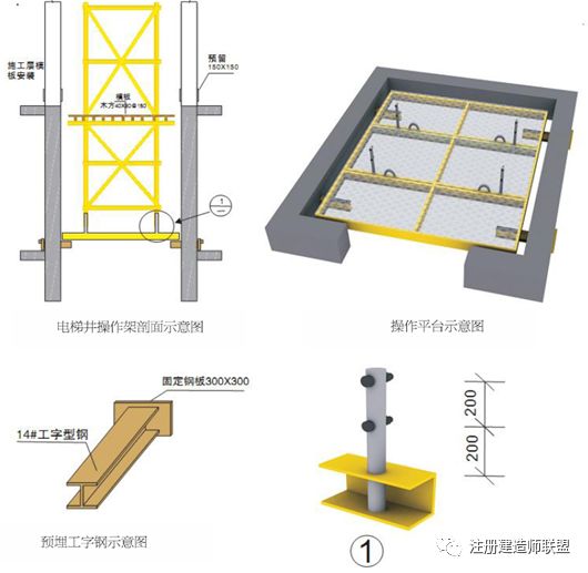 7、电梯井操作架—分段悬挑(1)无论采用何种方式,电梯井操作架及后续防护方式,均应编制专项安全施工方案。