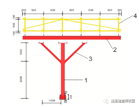 (3)斜撑为100*50mm方钢,斜撑的两端焊接150*200*10mm钢板,用M12螺栓连接衔架主梁和立柱。