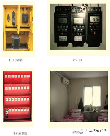 (4)为了满足生活区工人手机充电方便,生活区单独建立手机充电站,设立单个手机充电箱,专人管理,统一充电。