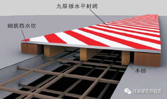 16、后浇带防护(1)后浇带上用九层板全封闭隔离,2、两侧砖砌式挡水坎,挡水坎应粉刷平直;