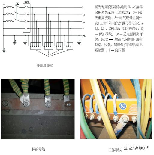 (2)在同一电网中,不允许一部分用电设备采用保护接地,而另一部分设备采用保护接零,电箱中应设两块端子板(工作零线N与保护零线PE)保护零线端子板与金属电箱相连。工作零线端子板与金属电箱绝缘。