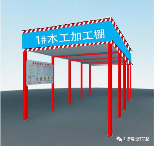 (6)工具式木工加工棚需在醒目处挂操作规程图牌,图牌尺寸为:3000mm*1500mm,图牌朝内。