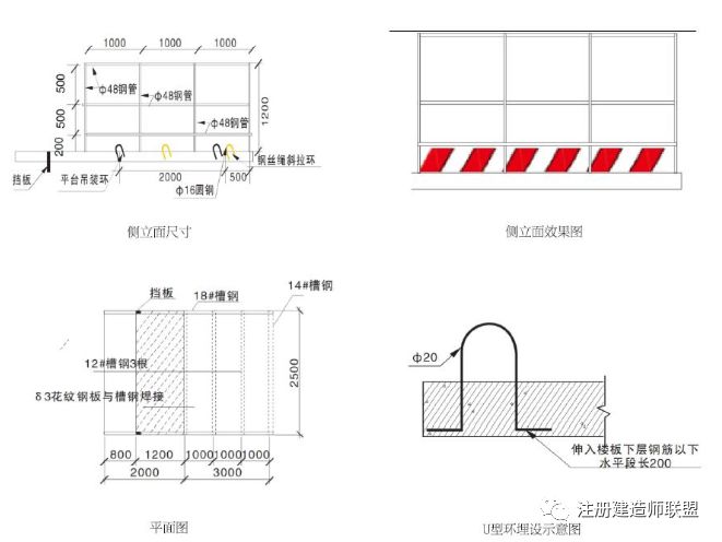 14、洞口防护 短边<1500mm(1)采用¢6@150mm单层双向钢筋作为防护网,在混凝土浇筑前预设与模板内。