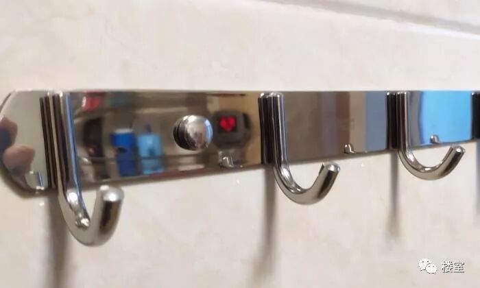 还有一个挂钩架,它有五个挂钩,在加厚底座的保护下,可以放置更多挂式东西,比如浴巾浴花等,或者换穿的内衣等,都可以挂起来方便洗完澡使用。