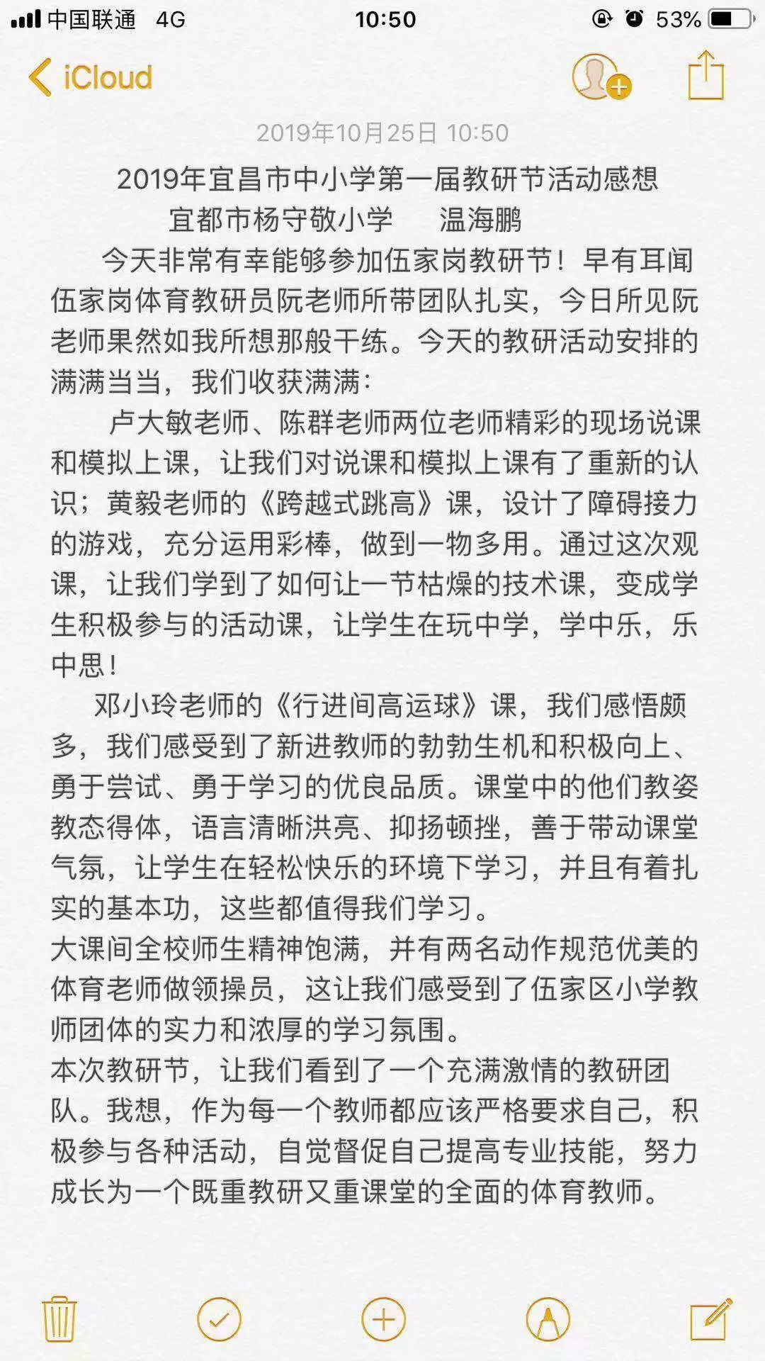 有幸参加宜昌市第一届教研节体音美专场系列活动,我深深的感动于伍家体育团队强大的能量聚合,合力打造体育学习共同体;感动于伍家体育人的专业研修精神,不断夯实教研过程;感动于伍家体育人的坚持和专注,不断研究、不断创新教研形式。相信通过多元化的教研方法和手段,伍家体育人一定会更加务实,提高课堂教学质量,提升课堂教学硬核本领,快速成长。