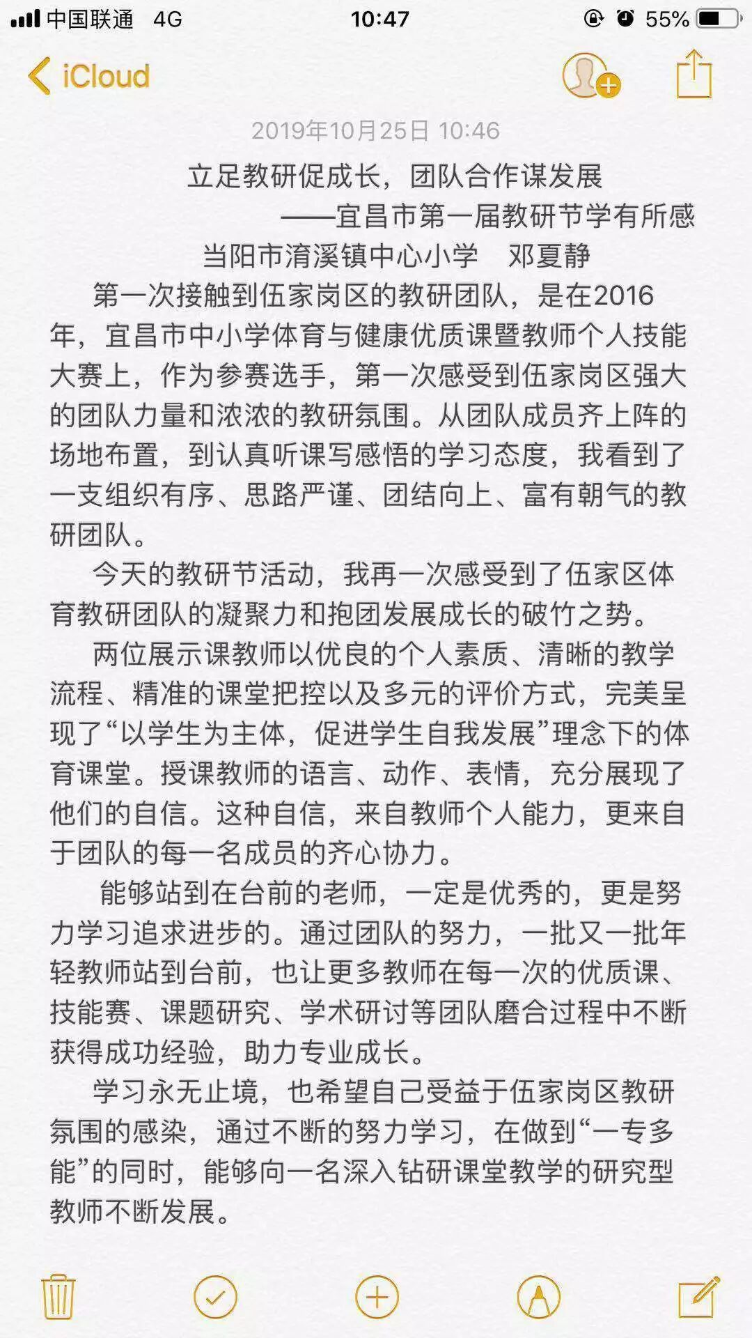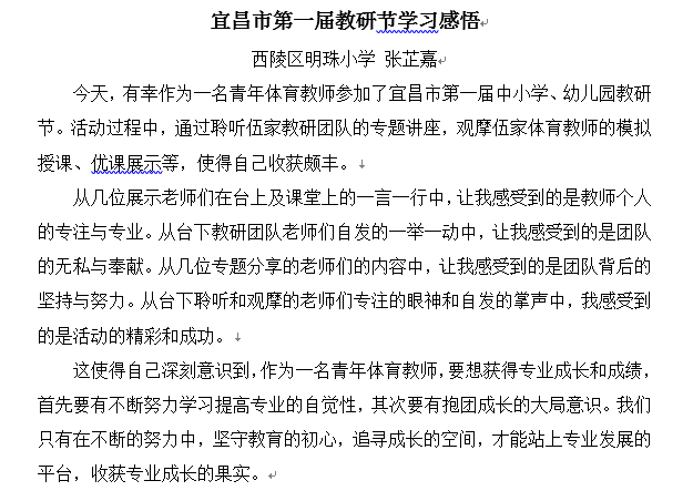 成绩是我在伍家体育教研团队成长的足迹,而让我铭记的是一直努力向上的自己,帮助我成长的伍家教研团队,以及为我指引方向的教研员。正是因为我在这个团队中向下沉潜,才具有了向上飞扬的能力。