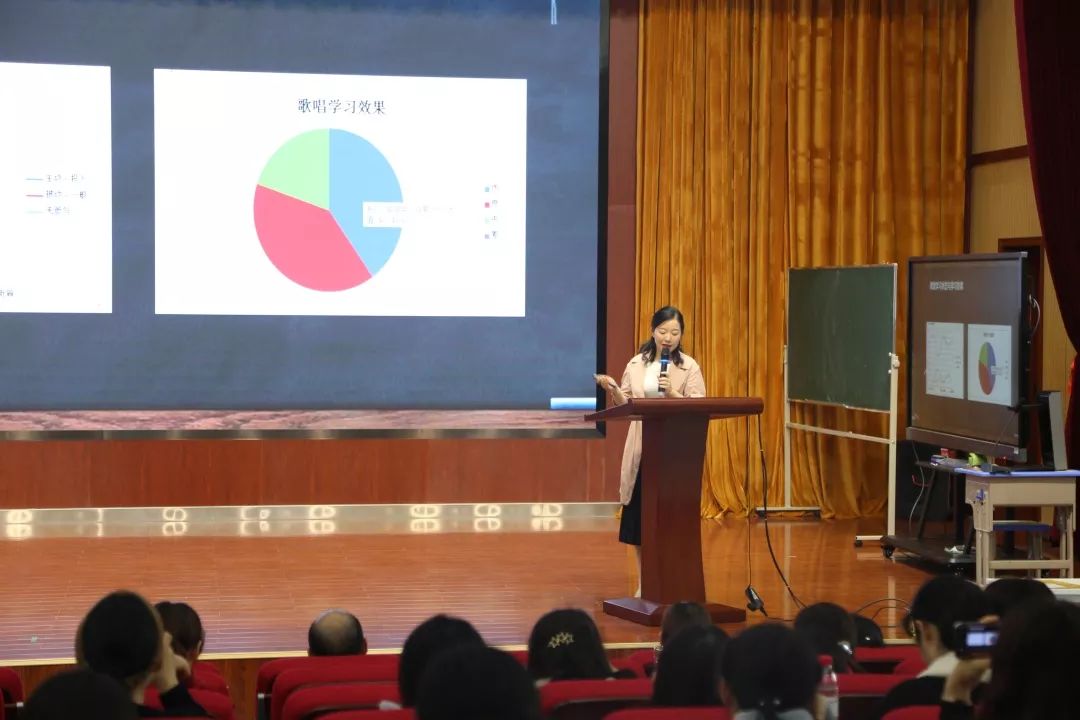 真实的课堂,真实的研究,在活动现场,伍家岗区音乐学科中心组成员围绕兰玉竹老师的《小青蛙》一课,开展了课堂观测、课后检测和评价反馈活动。杨岔路小学吴立老师进行了基于课堂观察的数据分析与反馈。她从“我们的设计、我们的实施、我们的分析”三个方面生动阐述,用数据说话,既有理论的高度,又有研究的深度,给观课者留下了深刻的印象。