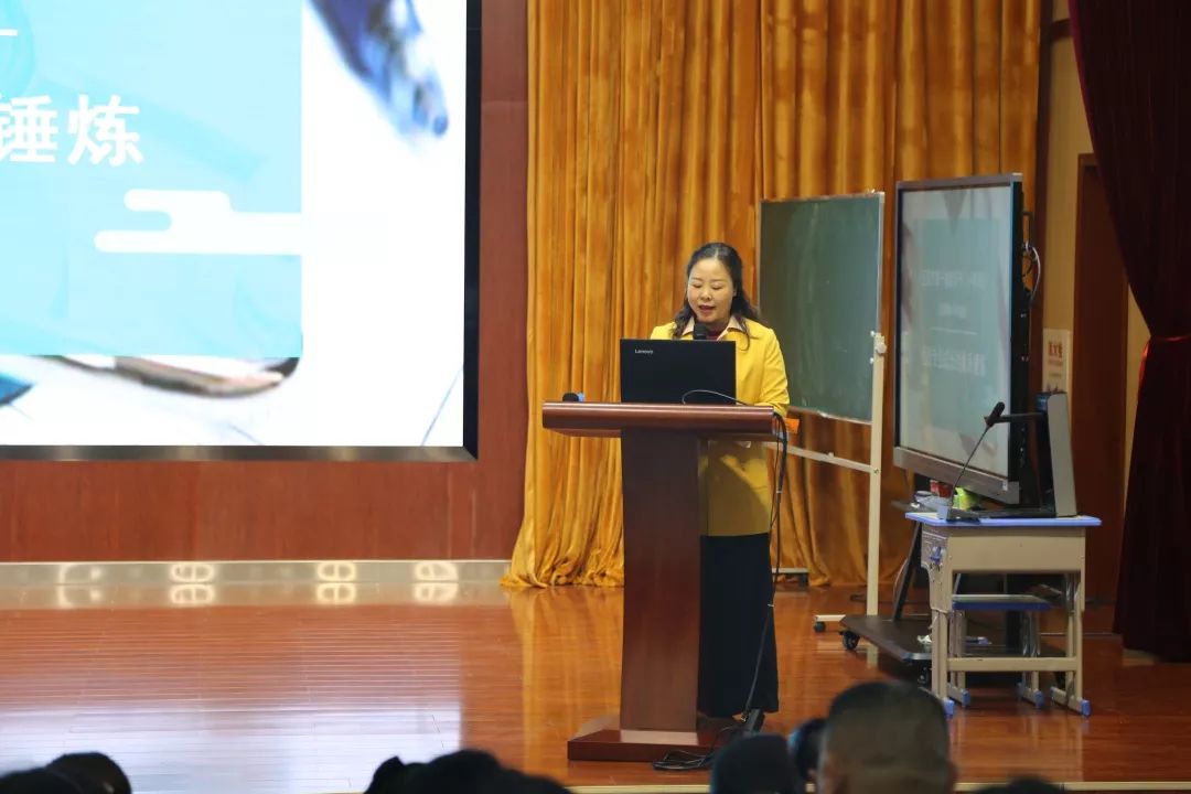 活动伊始,伍家岗区教育科学研究院中小学体育教研员阮会芹老师,代表体音美三个学科,以《坚守初心促成长,磨砺匠心提质量》为题,针对伍家岗区体艺“教师队伍高学历、年轻化”的新形势,从“立规范,为课堂教学保驾护航;做研究,让课堂教学提档升级;强能力,提课堂教学硬核本质”三个方面,进行了“促进专业成长的素质锤炼”经验分享。