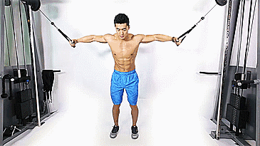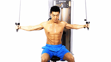 动作要领:上臂抬起稍高于肩位或与肩齐,肩关节放松,两手肘稍屈,手腕稍向内扣,胸大肌感到充分伸展,并集中以胸大肌的收缩力,由上向下拉引至手把处于小腹前位,同时使胸大肌处于“顶峰收缩”位,稍停。