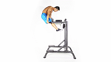 动作要领:使用双杠最宽的间距握双杠,两臂伸直支撑在双杠上两腿自然弯曲,双脚重叠,身体放松下垂;不要故意挺胸,使胸大肌的下部位垂直于地面。