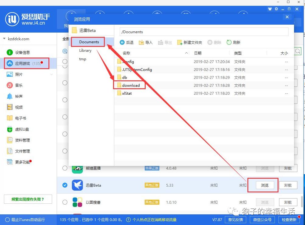 点击应用游戏,找到迅雷,点击旁边的浏览,documents_download,这个文件夹里包含了你在迅雷下载的所有东西,选择你所需要的内容导出即可。