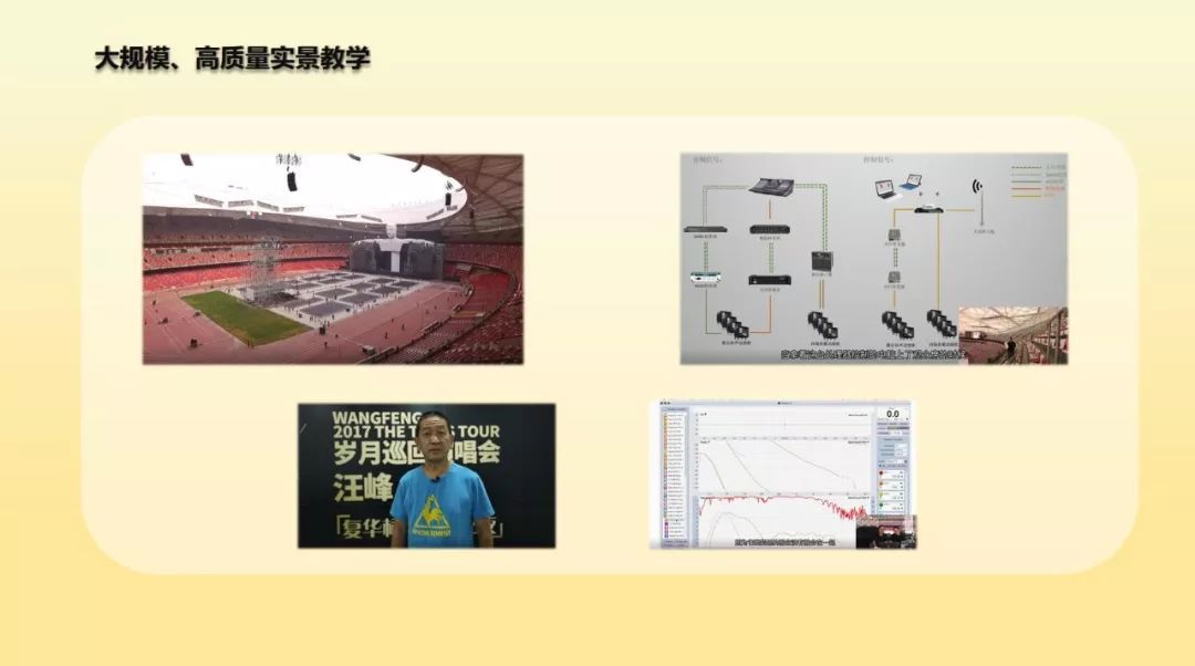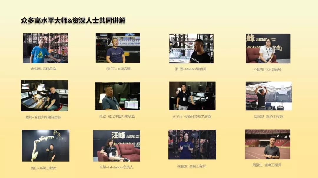 曾山先生通过对解密鸟巢汪峰演唱会音响制作、第一届现场混音大赛等金牌调音师策划的代表课程和赛事概况的介绍,讲述了金牌调音师团队是如何为实现初衷而付出实际行动。幸运的是,这些努力都得到了业内众多前辈老师们的大力支持,也获得了从业人员的广泛认可。金牌调音师将继续为行业输出更多、更高质量的教学课程和技术交流活动。