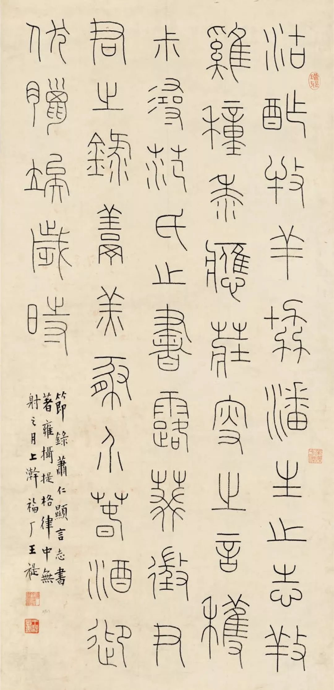 钤印:琅邪(朱)带燥方润(朱)福厂五十后书(朱)王禔长寿(白)