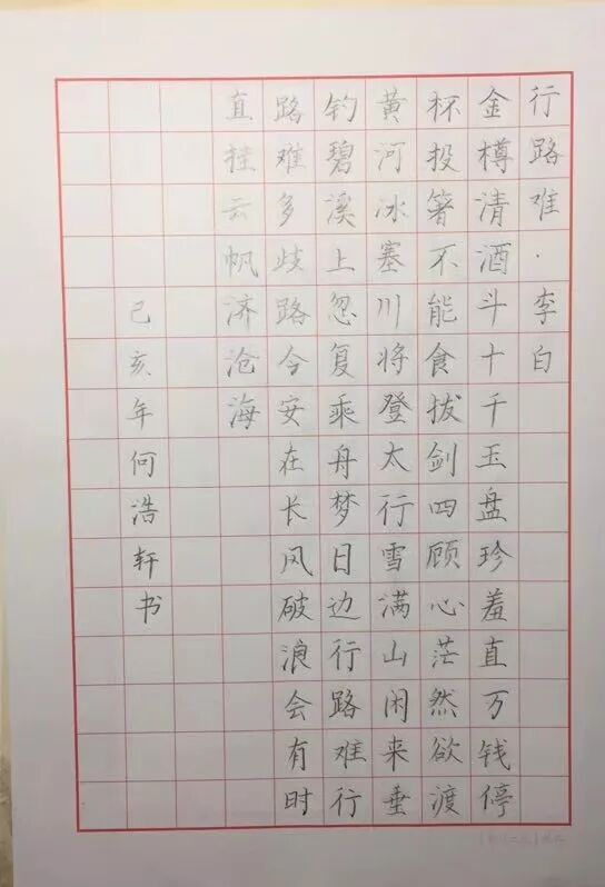 何浩轩同学小小年纪结构的理解能力很强,笔画的控制和出锋写的很好,在你跟着我学习的这一年多里,妈妈能在每一次的课堂练习和家庭作业中签字,看得出妈妈对你在练字这件事的重视,你的作业总是超额完成,每次在老师布置作业时,你总是要求,老师,再多布置几个字吧。你的作品中不管是笔画多的字还是笔画少的字都能够控制大小保持一致,整体的章法非常好,作品清丽秀气,谁能想到这是一个小男孩的字呢?