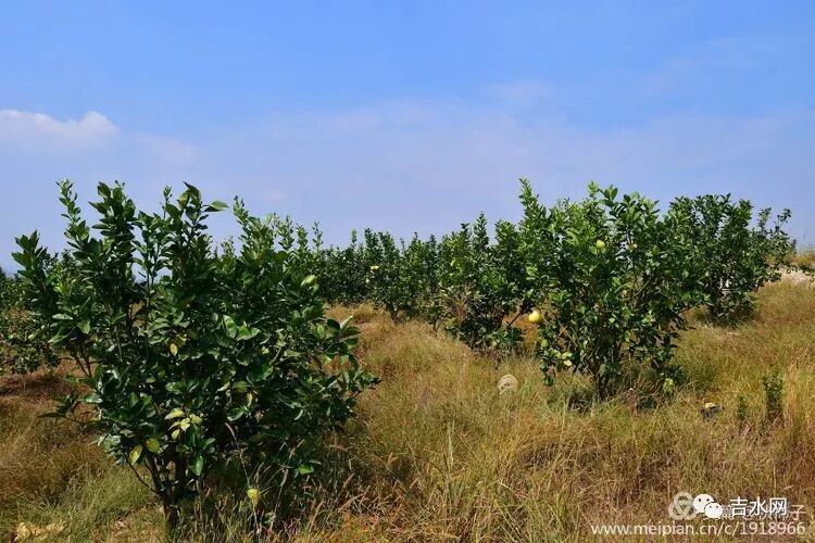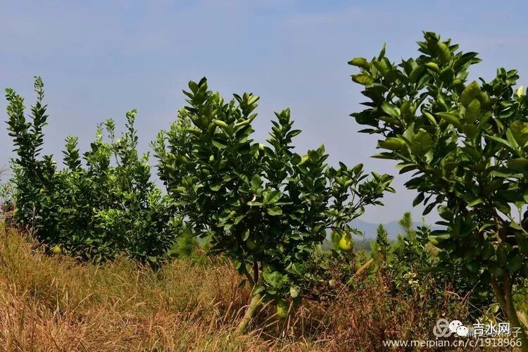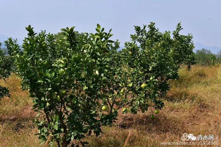 休息片刻后,书记陪同我们来到了井冈蜜柚基地。1100多亩规模的蜜柚基地上的颗颗蜜柚,在阳光的照耀下显得格外妖娆!这里“橘柚花开紫白香,婆娑碧叶绽祺祥。金黄甜脆酸柔爽,瑞景丰盈富贵长”(胡秉言:山东省民族文化学会茶文化研究会副会长)。一排排碧绿茂盛的柚树挂满了柚果,压弯了枝头;一阵阵沁人心脾的柚果清香迎面扑来,使人陶醉;一瓣瓣柚子晶莹剔透,脆嫩爽口。书记高兴地对我们说:由于精心管理,尽管旱情严重,今年产量有望可达60-70万斤。我们边看边品尝,乐不思蜀,流连忘返,久久沉浸在蜜柚情意绵绵之中。