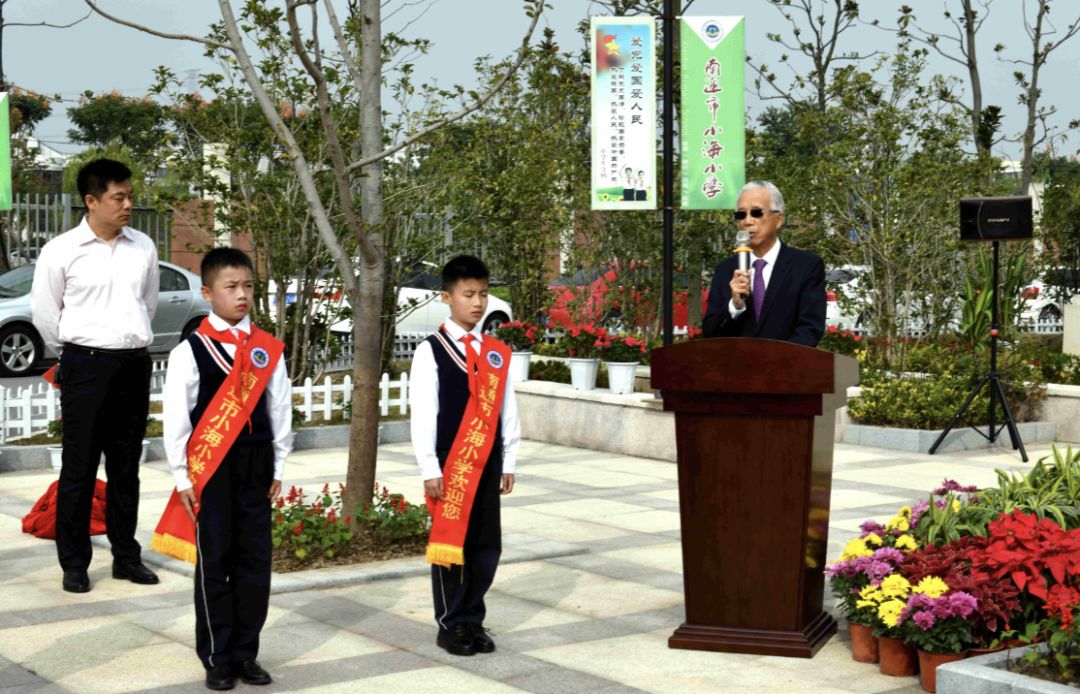 10月25日,深秋的早晨,阳光恣意,南通市小海小学迎来了一群特殊的客人,他们是方肇周老先生的儿子方铿先生及家人。小海小学和方肇周老先生之间有着这样一段深厚的渊源。小海小学是方肇周老先生的母校,方氏家族一直以来惠教泽学、乐善好施,1984年,香港肇丰集团有限公司原董事长方肇周先生回乡探亲,看望了学校师生并决定捐资兴教。至2002年,与其子方铿先生共捐助学校460多万元人民币为母校建设了图书楼、教学楼、综合楼、艺苑楼及教工宿舍楼。