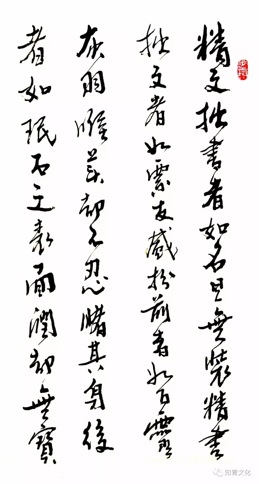 精文拙书者,如名旦无装。精书拙文者,如票友盛扮。前者如百灵灰羽,喉美却不忍睹其身。后者如珉石之表,面润却无宝玉内容。王羲之醉笔酣畅,书感时兰亭。颜真卿悲肠愤懑,挥祭侄文稿。毛泽东意气飞扬,畄恢宏诗篇。如上者,乃文书俱佳是也。拙书者,常掩其文风采。拙文者,徒有写字之功。唯两全者,人可思其文,赏其书,明其史,察其识,步其韵,而念其人也。故,受益匪浅,受教亦深矣。