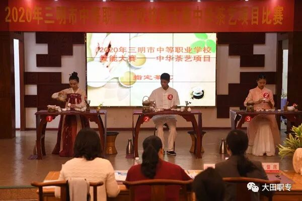金秋十月鲜花艳,五彩缤纷竞相绽。由市教育局、人社局、农村农业局、卫健委、旅游局、交通运输局6个部门共同举办的2020年三明市中等职业学校技能大赛大田职专赛点于10月25日-26日举行。共有中华茶艺、手工制茶、中国舞表演、美术、书法等5个类别8个项目竞赛,来自全市中等职业学校12个代表队284名选手参加各竞赛项目角逐。