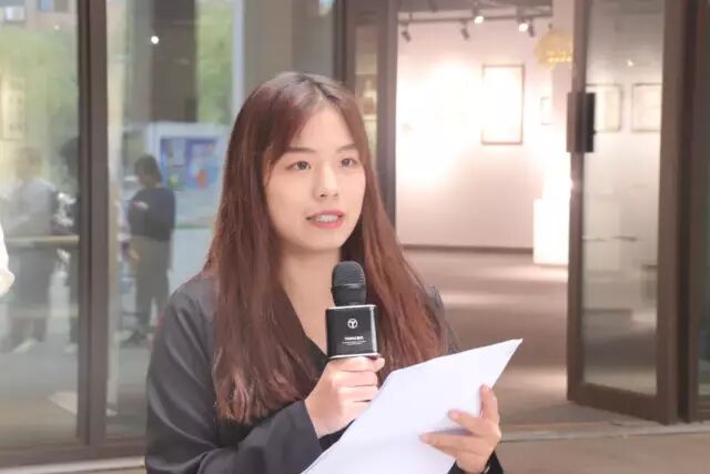 学生代表张萌婕在发言中分享了此次社会实践的经历和收获,呼吁更多同学加入到社会实践中去,通过理论与实践相结合,创作出更多具有革命历史情怀的作品。