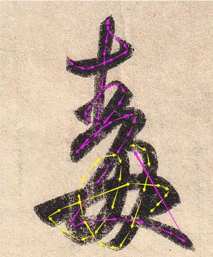 毛笔在纸上处在翻滚状态最后笔会“绞”起来故名,如下图