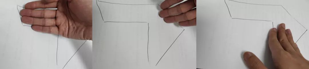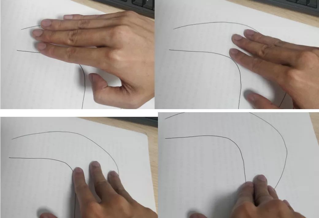 图二行笔,和纸接触的是手背到了拐弯处让毛笔站起来