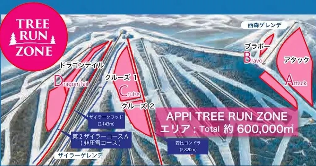 2.雪场面积282公顷,相当于60个东京巨蛋大小。从山顶呈现放射状向下延伸出21条雪道,平均长度2.1公里,总长度45.1公里,居日本之冠;