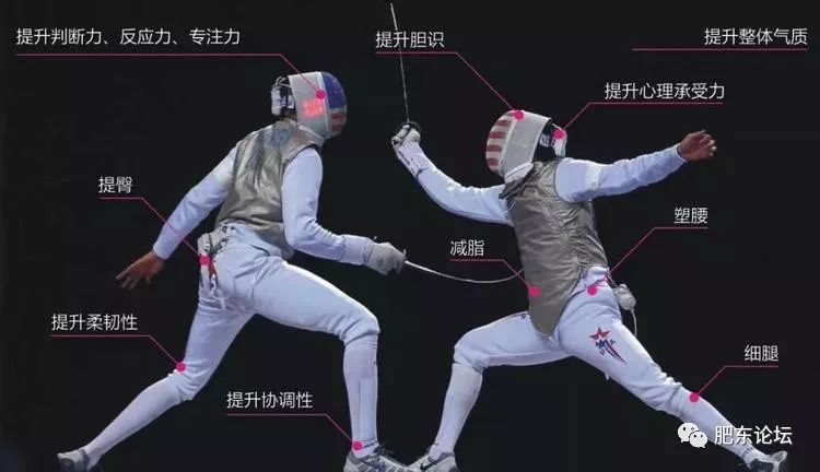 由于击剑的基本动作是需要打开髋宽节的,这样就可以使大腿内侧肌肉得到充分的锻炼,大腿内侧肌肉是绝大多数运动难以练到的部位,而恰恰是这个部位的肌肉,经过长期的训练,可以使击剑爱好者的腿型拥有完美的线条,令身材更加挺拔傲人。