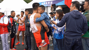 比赛结束后,他趴在父亲的怀里