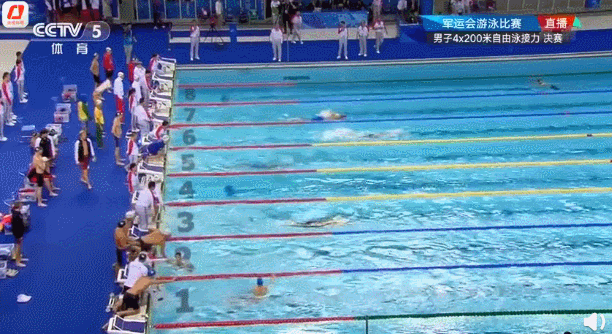 在19日结束的军运会男子4×200米自由泳项目中,中国队以7分13秒35的成绩,破赛会纪录夺冠!