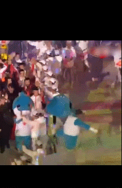 吉祥物头套也掉落,