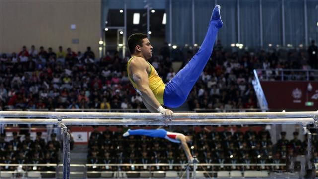 2019年10月23日,第七届世界届军人运动会竞技体操男子团体决赛,在湖北省奥林匹克体育中心体育馆举行。中国队夺得冠军,巴西队和朝鲜队分获二三名。