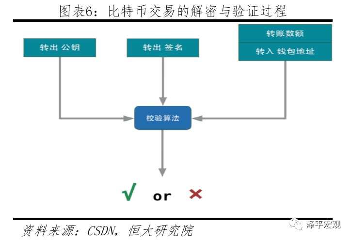 在比特币区块链中,私钥代表了对比特币的控制权。交易发起方用私钥对交易(包括转账金额和转账地址)签名并将签名后的交易和公钥广播,各节点接收到交易后可以用公钥验证交易是否合法。在这个过程中交易发起方无须暴露自己的私钥,从而实现保密目的。