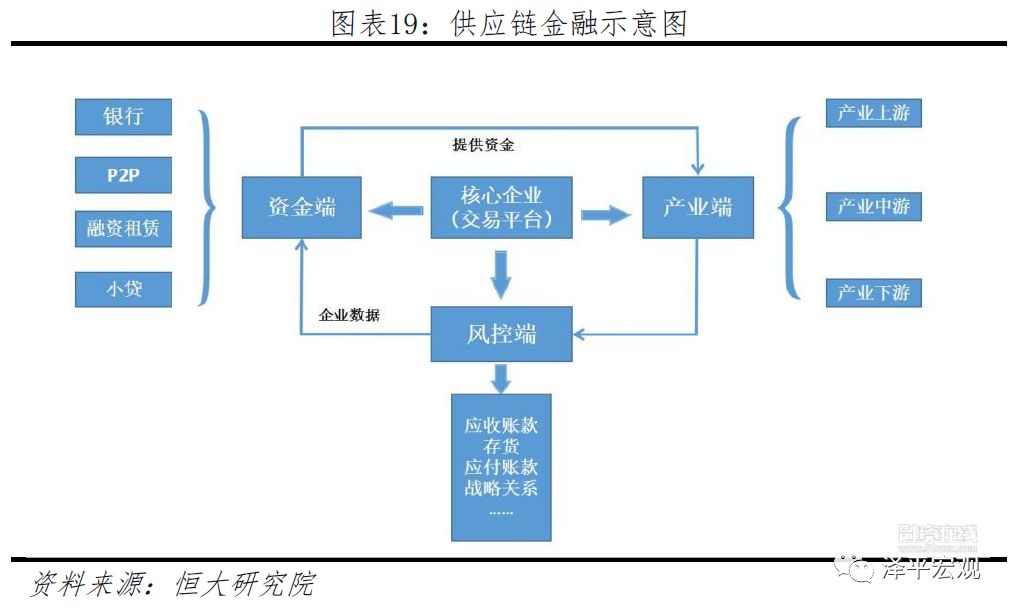 供应链金融一般是指利用供应链上核心企业的信用支持为上下游中小企业提供相关的金融信贷服务。与传统对公信贷侧重大中型企业不同,供应链金融能够在掌握整条供应链上的商流、信息流、物流和资金流的全局图景后为中小企业提供更快捷方便的资金融通支持。根据前瞻产业研究院的测算,到2020年我国供应链金融的市场规模将达15万亿左右。