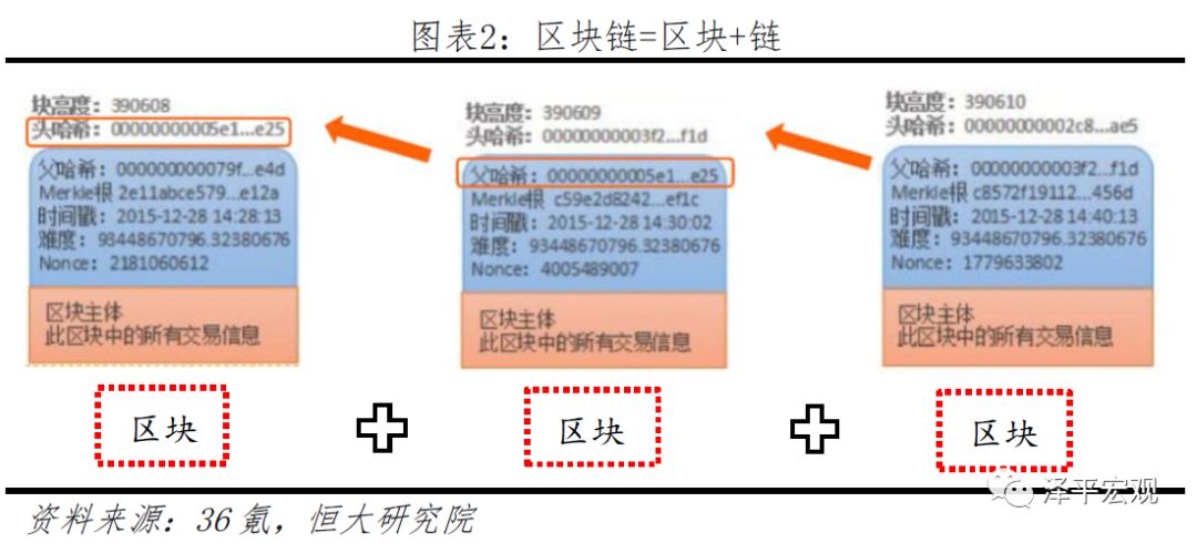 区块链可以视作一个账本,每个区块可以视作一页账,其通过记录时间的先后顺序链接起来就形成了“账本”。一般来说,系统会设定每隔一个时间间隔就进行一次交易记录的更新和广播,这段时间内系统全部的数据信息、交易记录被放在一个新产生的区块中。如果所有收到广播的节点都认可了这个区块的合法性,这个区块将以链状的形式被各节点加到自己原先的链中,就像给旧账本里添加新一页。
