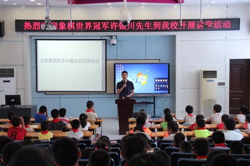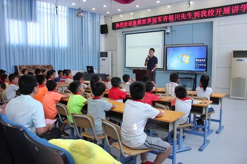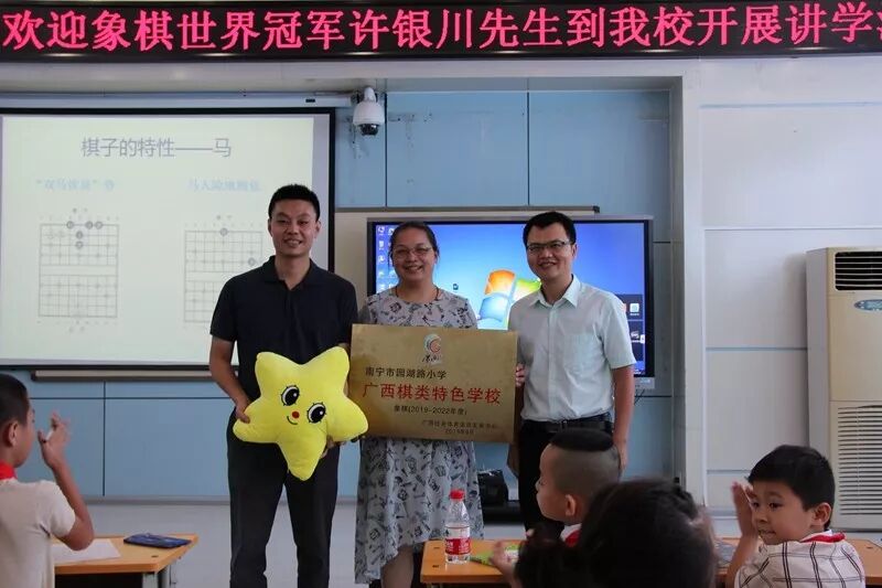 近日,象棋世界冠军许银川来到南宁市园湖路小学,与部分热爱象棋的学生进行了丰富多彩的象棋交流活动。