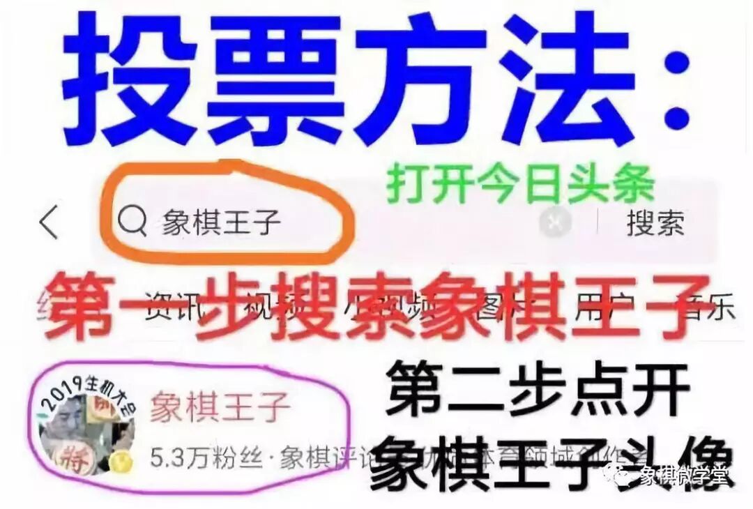 大概是前年吧,王子顺应时风,也因赛事需要,在企鹅电竞开设了直播,一般的象棋主播分两种,一种是“我干杯”型,一种是“你随意”型。“我干杯”型主播就是生怕棋迷听不懂,讲解棋路细致入微。王子是“你随意”型,他也讲棋,但更多的时候只是点缀,并不过多评价棋手们每一步的意图,让棋迷可自由想象,自由发挥。他的普通话是直播间的一个亮点,有人“吐槽”王子的普通话不太标准,但作为湖南老乡,听到一口正宗的“湖南塑料普通话”,我还是感觉挺亲切的。这世上,没有一个行业是轻松的,容易的。象棋主播,象棋报道员的头衔,看起来光鲜亮丽,其实这其中的委屈,只有干过这行的人才知道。不是有那么一句话吗:“被误解是作为一个表达者的宿命”,王子是一个报道员,宣传员,自然也是一个表达者,他从业多年来,难免有被误解、被抨击的事情发生,有几次写作,可能是触及了某个敏感话题或敏感人物,王子立马被推上了舆论的风口浪尖,在人前他可能没说什么,在人后,他的委屈是难以想象的。但他坚持下来了,依然是那个都敢爱敢恨,正直敢言的王子,正因他的坚持不懈,百折不挠,才有了我们今天每逢大赛总是能得到第一手的反馈与报道,象棋界需要这样的人才!象棋界何止是需要这样的人才,简直是太缺少类似的人才了,不信的话,象棋界的耳熟能详的报道员,你能数得出几个?天哪,2亿人口的体育项目,居然宣传人员没有几个!这真是太荒谬了!象棋界对于报道、宣传人员很不重视,很多时候,都是部分棋迷自发地报道赛事,比如我听山西的鹿小兵说过,他出去报道,舟车劳顿,忙前忙后,很多时候连车费都要不到,这样多次下来,他也寒了心。相信与鹿小兵同志有过相同遭遇的也不少吧。可见,不是没有人才,而是你给人家的基本保证都没有,付出没有回报,他们如何发挥才能?王子算是报道员里面收入还可以的,可仍是付出大大高于回报,凭着一股热情在为大伙儿做事。说句实话,现在象棋界并不缺象棋高手,缺的是报道、宣传象棋的高手,希望各地棋协能提高重视,以后在这一块儿,能有所改观吧。话扯远了点,但不吐不快。最近,就有一个对咱们象棋宣传,扩大象棋影响力极有裨益的大事----《今日头条的生机大会人气榜,为你喜爱的创作者投票》。这个生机大会,主要是为创作者提高影响力而举办的一次全民参加,全民投票的活动。体育这一版块,目前有五十个不同项目的创作者在进行激烈竞争,其中一个钓鱼的哥们的票数与王子不相上下,也正积极到处拉票,一旦王子夺冠,就能让象棋在众多的体育项目中脱颖而出,从而提高、扩大象棋影响力,从现在开始,就让我们一起给王子加油,给象棋加油吧!!