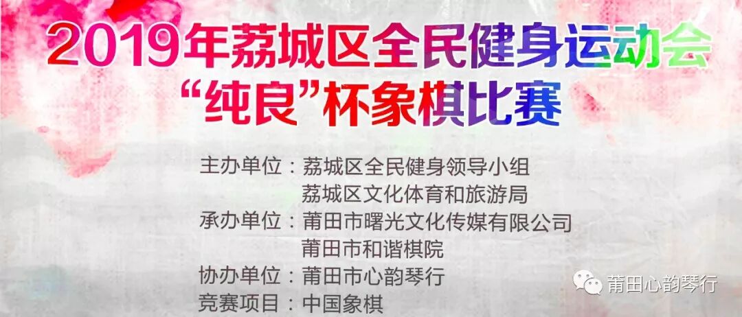 2019年10月20日、由荔城区文化局主办、莆田市和谐棋院承办、莆田市心韵琴行协办的「荔城区全民健身运动会象棋比赛暨少儿象棋精英赛」于莆田市和谐棋院举行。棋手酣战之余,心韵琴行师生以曲助弈,为精彩的对局锦上添花。