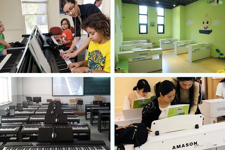 据珠江艾茉森数字音乐教育中心负责人介绍,“1+15数码钢琴集体课室”是珠江艾茉森针对幼儿园开发的适合幼儿思维和学习特点的集体钢琴教学解决方案。它采用智能软件、专用的设备教学,设立了独有专业课件增强小孩子的学琴乐趣,使小朋友的学习想玩游戏一样富有趣乐性和开创性;同时启蒙教育从一对一变成一对六、一对十、甚至是一对十五,提高了效率和趣味。未来珠江艾茉森数字音乐教育中心还将推出电鼓集体课室、成人钢琴集体课室。珠江艾茉森(AMSON)数码乐器是珠江钢琴集团旗下的数码乐器制造商,为新三板上市企业,主要生产数码乐器(数码钢琴、电声吉他、电鼓、双排键等),品质在业界享有盛誉,市面上市场占有率较高的智能钢琴课室均首选珠江艾茉森生产的数码钢琴作为教学用琴,这是一种品质的保证。
