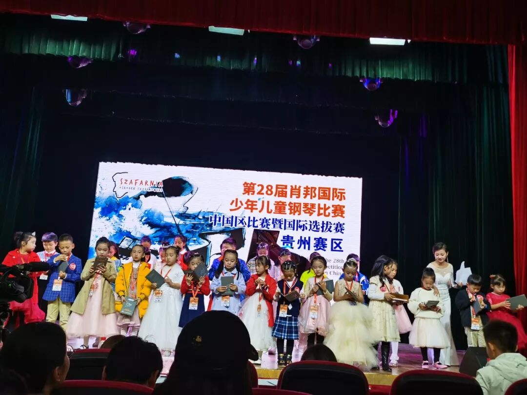 2019年10月26日,都匀肖邦钢琴教育选派的19名选手在贵阳市儿童剧场举办的第28届肖邦国际少年儿童钢琴比赛(俗称“小肖赛”)中,凭借出色的表现从众多优秀选手中脱颖而出,斩获5个组别第一名、4个组别第二名等优异成绩。最终都匀肖邦钢琴教育有16名选手获得代表贵州赛区参加2020年1月16-19在北京的中国区决赛的资格。再次祝贺老师和同学们,希望继续努力,再接再厉!同时更要感谢家长的辛勤付出!学生成绩如下:
