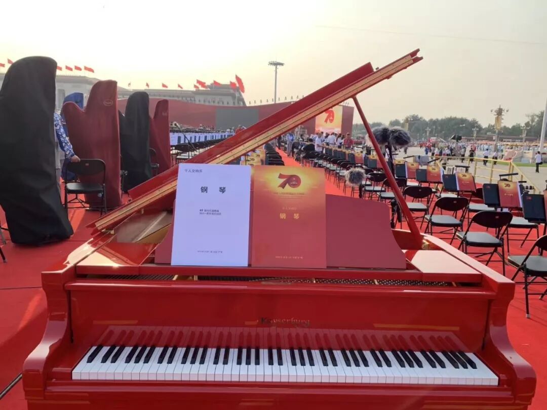 庆祝中华人民共和国建国70周年,珠江钢琴集团代表中国钢琴制造业经批准授权使用五星红旗五角星及中国红定制出一款高水准、高质量、纯手工打造的红旗飘扬70周年纪念版。