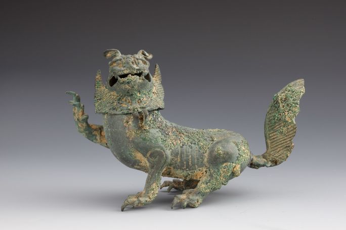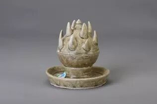 宋元薰炉形制多样,“曰猊、曰鼎、曰彝、曰鬲、曰朝天、曰象腿、曰香奁、曰桶子”。高丽青瓷的“狻猊出香”等造型均受到中国影响。新安沉船曾出水一件狮形熏炉,又名“金猊”,元代至明初,宫廷及外销均有该类品种。