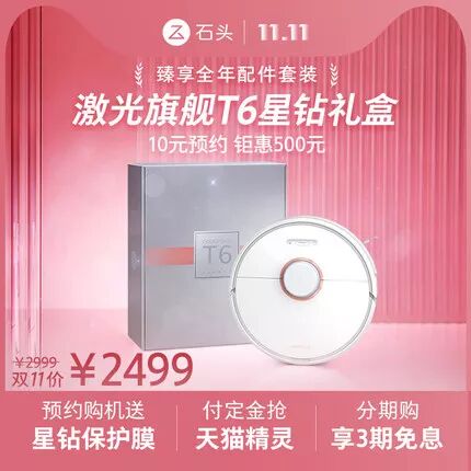 『10元预约,送全年耗品和康宁锅,全年最低价,小米系里口碑最好的扫地机器人,到手价2499』石头扫地机器人T61智能家用超薄吸尘器
