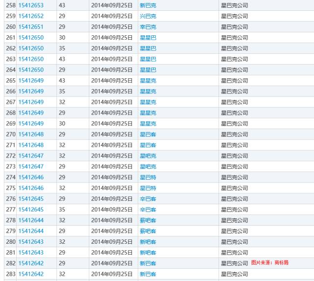 星巴克考虑比较多,注册了星吧克、星巴克、辛巴克、薪吧克、星星巴、星星克、巴巴克、奥巴克……