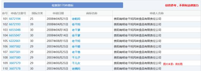 老干妈注册了老干爸、老干娘、干儿子、干女儿、老姨妈……